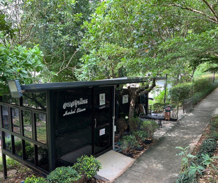 จุดที่ 2 บริการสปาหรือจะอบไอน้ำสมุนไพร มีห้องอบบริการบรรยากาศริมบึงบัวที่กำลังบานเต็มบึงสีแดงสวยมากหรือจะนวดแบบแผนไทยก็มีนะจ๊ะ แต่อันนี้เป็นบริการเสริมมีค่าบริการในราคาเป็นกันเองสามารถจองได้ครับ