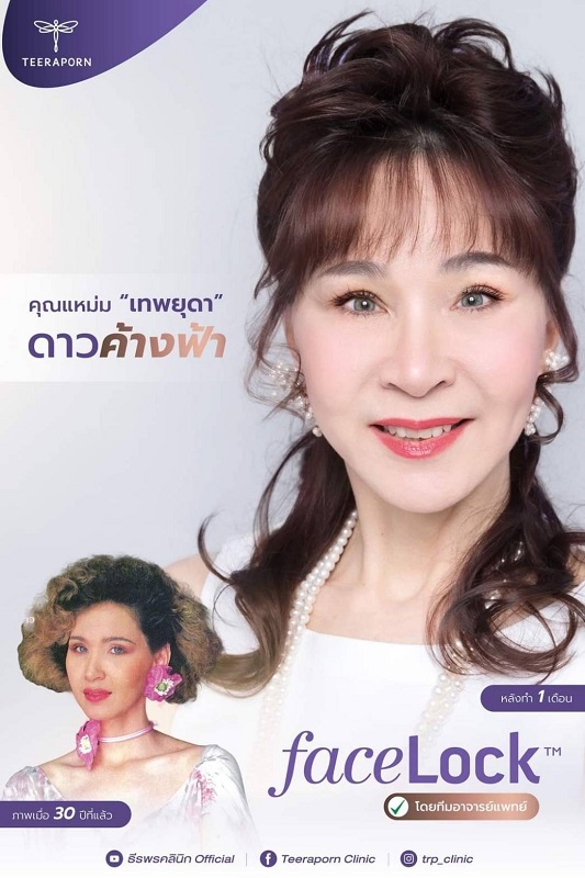 ปีนี้ 63 แล้วนะคะ จากที่คิดว่าโบท็อกซ์ช่วยเราได้ พอพ้นวัย 60 มันเริ่มไม่ดีแล้ว แค่ 2-3 เดือน หน้าเริ่มไป เราไม่ได้มีปัญหาถ้าจะต้องพึ่งการทำศัลยกรรม ก็เลยคิดว่าสิ่งที่จะเอาอยู่น่าจะเป็นการทำศัลยกรรม ซึ่งแหม่มมีคุณหมอในดวงใจที่เป็นญาติกัน คือ “คุณหมอชลธิศ” (ผศ.นพ.ชลธิศ สินรัชตานันท์) หรือว่า “พี่ปอ” ซึ่งเป็นพี่ชายของ “พี่ติ๊ด” (ก่อเกียรติ ลิมปพัทธ์) สามีของแหม่ม เมื่อ 33 ปีที่แล้ว แหม่มได้ทำ Face Lock ช่วงบนใบหน้า บริเวณคิ้ว และทำตากับคุณหมอชลธิศ ช่วงปีหลังมานี้แหม่มไม่ฉีดโบท็อกซ์เลย เพราะมันเอาไม่อยู่แล้ว จึงตัดสินใจทำศัลยกรรมกับพี่ปออีกครั้ง โดยการทำ Face Lock เป็นการดึงหน้า ส่วนใต้ตา และขมับบน ตอนนี้เรียกว่าหน้าแหม่มเป๊ะมาก ใต้ตาตึง ริ้วรอยตีนกาแทบไม่มี ความรู้สึกเหมือนเมื่อสามสิบกว่าปีที่แล้วที่แหม่มทำตา แฮปปี้มากค่ะ เดินสายทำงานได้ตามปกติ ถ่ายรูปลงโซเชียลทุกวันนี้ไม่ต้องใช้แอปช่วย แต่รูปที่ถ่ายกับเพื่อนๆ ถ้าใครที่จะใช้แอปแต่งรูปกรุณาไปแต่งเองเลย เราไม่รอนะโพสทันที