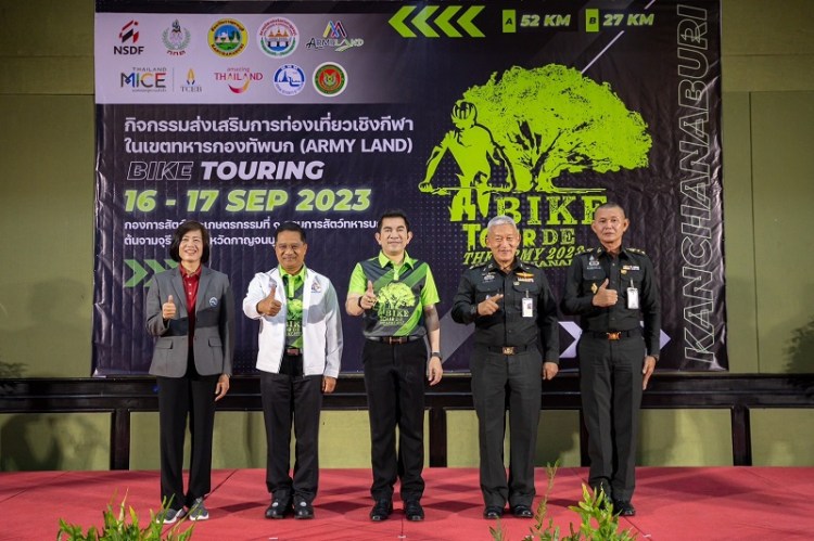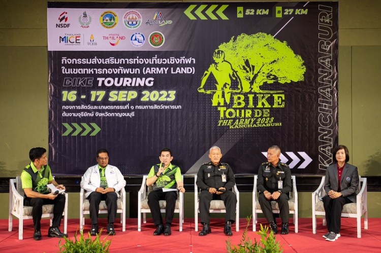 กาญจนบุรี ร่วมกับ กองทัพบก และสมาคมกีฬาแห่งจังหวัดกาญจนบุรี ร่วมแถลงข่าวการจัดกิจกรรมจักรยาน “ไบค์ ทัวร์เดอ อาร์มี (Bike Tour De The Army)” ส่งเสริมการท่องเที่ยวในเขตทหาร ชวนนักปั่นสายลุยรักธรรมชาติ ร่วมพิสูจน์เส้นทางอาร์มี่แลนด์ 17 ก.ย.นี้