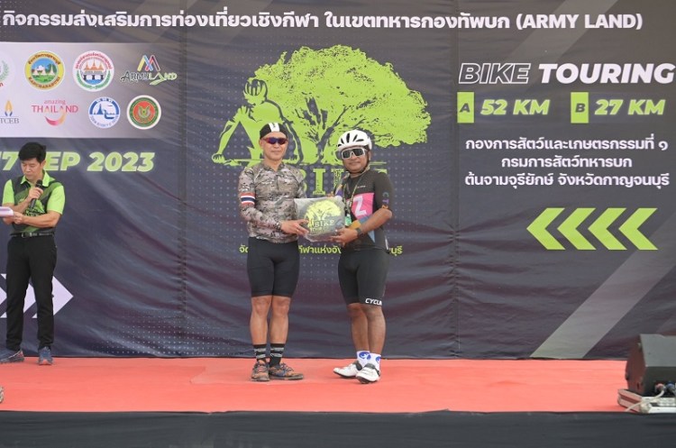 ปิดฉากอย่างสวยงาม กับกิจกรรมจักรยาน “ไบค์ ทัวร์เดอ อาร์มี (Bike Tour De The Army)” โดย จ.กาญจนบุรี ร่วมกับกองทัพบก และสมาคมกีฬาแห่งจังหวัดกาญจนบุรี จัดขึ้น เพื่อส่งเสริมการท่องเที่ยวในเขตทหาร ท่ามกลางนักปั่นกว่า 1000 คน ที่เข้าร่วมงานอย่างคึกคั่ก