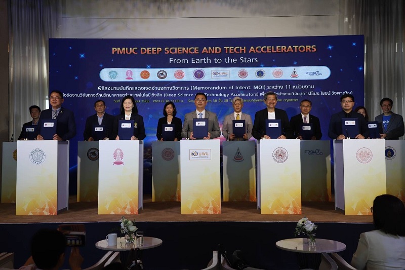 “บพข. ซึ่งถือเป็นตัวกลางเชื่อมโยงร่วมกับ 11 หน่วยงานเร่งรัดงานวิจัยทางด้านวิทยาศาสตร์และเทคโนโลยีเชิงลึก จึงได้จัดให้มีพิธีลงนามบันทึกแสดงเจตจำนงทางวิชาการ (Memorandum of Intent: MOI) ระหว่าง บพข. กับ 11 หน่วยงานดังกล่าวขึ้น เพื่อเร่งรัดงานวิจัยทางด้านวิทยาศาสตร์และเทคโนโลยีเชิงลึกไปสู่การใช้ประโยชน์เชิงพาณิชย์ มีการแบ่งปันทรัพยากร เช่น โครงสร้างพื้นฐาน และระบบนิเวศที่เอื้อต่อการสร้างผลิตภัณฑ์ หรือ บริการเชิงพาณิชย์ แหล่งฝึกอบรมบุคลากร ผู้เชี่ยวชาญ รวมไปถึงผู้ประกอบการ ให้สามารถสร้างธุรกิจได้จากงานวิจัยและนวัตกรรม”
