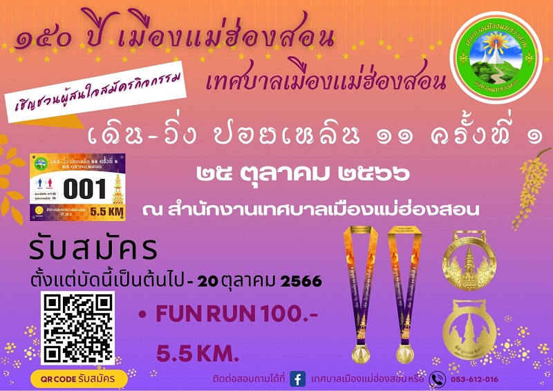 สำนักงานเทศบาลแม่ฮ่องสอน จัด “เดิน – วิ่ง ปอยเหลิน 11” ครั้งที่ 1 สำนักงานเทศบาลเมืองแม่ฮ่องสอน จังหวัดแม่อ่านเพิ่มเติม “สำนักงานเทศบาลแม่ฮ่องสอน จัด “เดิน – วิ่ง ปอยเหลิน 11” ครั้งที่ 1”