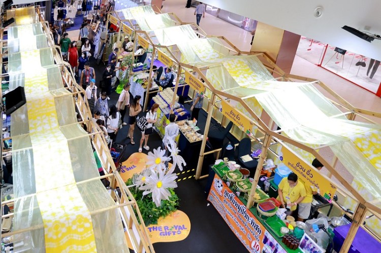 ภายในงาน THE ROYAL GIFT FESTIVAL ครั้งที่ 5 : “เทศกาลสินค้าจากโครงการในพระราชดำริ” ทุกคนจะได้อุดหนุนสินค้าสุดพิเศษจากร้านค้าของมูลนิธิโครงการในพระราชดำริ นำโดย สินค้าไฮไลท์จากร้านภัทรพัฒน์, ผ้าไหม มูลนิธิส่งเสริมศิลปาชีพฯ, มูลนิธิโครงการหลวง, มูลนิธิสมเด็จพระพันวัสสาอัยยิกาเจ้า, มูลนิธิอุทกพัฒน์, มูลนิธิศรีสวางควัฒน ในพระอุปถัมภ์ฯ, มูลนิธิอาสาเพื่อนพึ่ง (ภาฯ) ยามยาก, โครงการกำลังใจ, ร้านภูฟ้า, ร้าน ๑๐๙, มูลนิธิสายใจไทย และ ไตรโครงการ ได้แก่ โครงการพัชรสุธาคชานุรักษ์ โครงการสาละวะไล่โว่ และโครงการราชทัณฑ์ปันสุขสนับสนุนสินค้าในโครงการ Our Khung Bang Kachao กับชุมชนคุ้งบางกะเจ้า เช่น ทองม้วนสดสมุนไพรบ้านสวน, พันช์พิลังกาสา เครื่องดื่มเพื่อสุขภาพที่หาทานได้ยาก, อาหารคาวหวานสำรับคุ้งบางกะเจ้า โดยวิสาหกิจชุมชนแปรรูปอาหารโบราณ ผลิตภัณฑ์จากตลาดน้ำบางน้ำผึ้ง เช่น อ้วนอิ๋ว ลูกชิ้นหมูปิ้งกะทิสดสูตรเด็ด, ตะโก้ พิกุลทิพย์, วิสาหกิจชุมชนหัตถศาสตร์เพื่อสุขภาพ, ขนมปังกรอบร้านผู้ชายขายขนม ชมรมส่งเสริมการท่องเที่ยว ต.บางยอ ขนมครก ขนมต้มสูตรโบราณ และ หัวโขนพรรณราย ตำบลทรงคนอง ได้แก่ วิสาหกิจชุมชนหัตถศาสตร์เพื่อสุขภาพ, ร้านค้าชมรมส่งเสริมการท่องเที่ยว โดยชุมชน ต.ทรงคะนอง, หอมป่าจาก ต.บางกระสอบ, สวนผักพิ้งค์ดาว, ร้านลูกจากผ้ามัดย้อมสีธรรมชาติ, RUNGLADA ผลิตภัณฑ์จากกระดาษทิชชู่ ตำบลบางกระสอบ ขนมไทยหลากชนิด จากร้านหอมป่าจาก, ผลิตภัณฑ์แฮนเมด กระเป๋า พวงกุญแจ กระถางต้นไม้รักษ์โลก, ผ้ามัดย้อม โดยชมรมการท่องเที่ยว ต.บางกระสอบ