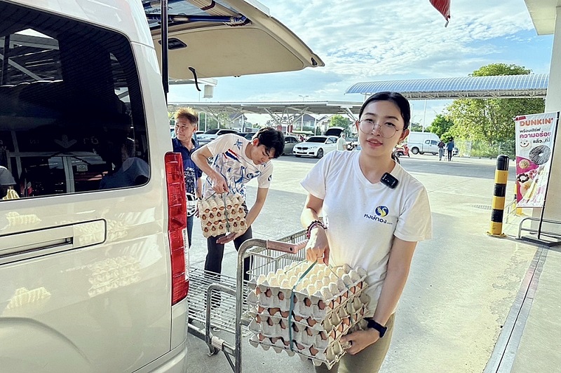 CEO วี และทีมงานหงษ์ทอง เดินทางไปที่ จ.นครนายก เพื่อนำข้าวสาร ไข่ไก่ พร้อมของใช้ที่จำเป็นไปมอบให้กับ ศูนย์ส่งเสริมและพัฒนาอาชีพคนตาบอด พิการซ้ำซ้อน (บ้านรื่นสุข) เพื่อให้ผู้ที่พิการซ้ำซ้อนได้นำสิ่งของเหล่านี้ไปใช้ประโยชน์ต่อไป อีกทั้งบ้านรื่นร่มแห่งนี้ยังเป็นหน่วยงานที่นำคนตาบอดพิการซ้ำซ้อนมาฟื้นฟู และพัฒนา ฝึกฝนในการสร้างอาชีพ โดยมีการฝึกการทำผ้ามัดย้อม ร้อยลูกปัด การทำเกษตร ตามความสามารถของแต่ละคน เพื่อให้มีคุณภาพชีวิตที่ดีขึ้น