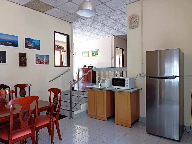 จุดเด่นอีกอย่างหนึ่ง ซึ่งถือเป็นหัวใจหลักของที่พัก ก็คือทำเล“จุดเด่นที่ดีที่สุดคือ ทำเลดีมากๆ ถือว่าเป็นจุดทำเลทอง อยู่ใจกลางเมือง แนะนำให้จอดรถไว้ที่บ้าน แล้วเดินเที่ยวได้แบบสบายๆ เดินเลี้ยวซ้ายออกจากบ้าน 100-200 เมตร ก็จะถึงสถานที่ท่องเที่ยวเช่น วัดช้างค้ำฯ วัดกู่คำ วัดภูมินทร์ (ปู่ม่านย่าม่าน) ถนนคนเดิน (ทุกวันศุกร์ เสาร์ อาทิตย์) สถานที่บริการนักท่องเที่ยว สถานีรถรางชมเมือง ซุ้มลีลาวดี พิพิทธภัณฑ์ฯ คุ้มเจ้าราชบุตร ฯลฯ ถ้าเดินเลี้ยวขวาออกจากบ้านประมาณ 300 เมตร ก็จะเจอตลาดสดเป็นตลาดใหญ่ในเมืองน่าน คือตลาดตั้งจิตนุสรณ์ (เช้า) ตลาดศรีคำ (เย็น) มีผัก ผลไม้ ขนม อาหารพื้นเมืองทุกชนิดของ จ.น่าน ซื้อมาทำอาหาร หรือมาทานที่บ้านได้เลย ส่วนสายสุขภาพ ก็มีสวนสาธารณะ ชื่อสวนศรีเมือง ให้เดิน-วิ่งออกกำลังกาย ห่างจากบ้านประมาณ 100 เมตรค่ะ”