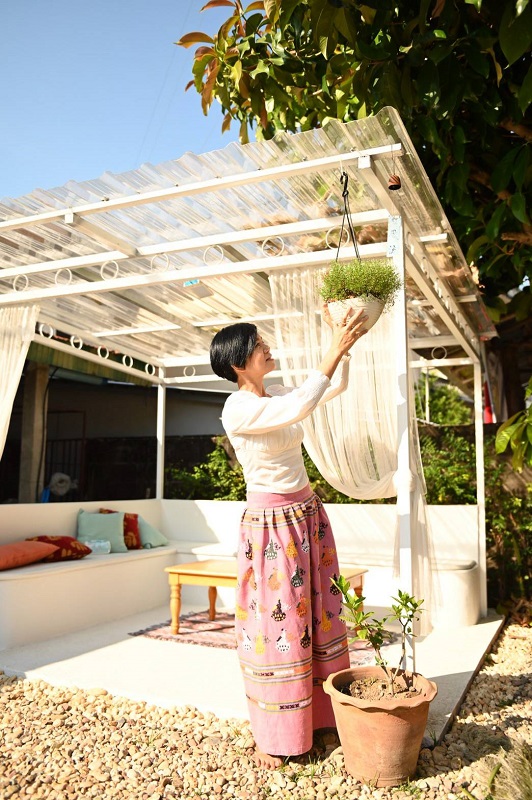 แจ๋ว เล่าย้อนให้ฟังถึงจุดเริ่มต้นในการผันตัวเองมาสวมหมวกอีกหนึ่งใบ นอกเหนือจากการทำงานในวงการบันเทิงที่ผูกพันยาวนานมากว่า 30 ปี ว่า“เริ่มจากช่วงโควิด ที่ทุกคนกระทบหมด ก็เลยเริ่มคิดว่าเราต้องปรับตัวเองอย่างหนัก พอดีตอนนั้นบ้าน ที่ จ.น่านว่างอยู่ ซึ่งทำเลดีมากๆ อยู่ใจกลางเมือง จึงคิดจะทำเป็นบ้านพักสำหรับนักท่องเที่ยว อีกอย่างเราก็ยังมีภาพความทรงจำดีๆ ของครอบครัว ที่เต็มไปด้วยความรักและความอบอุ่นภายในบ้านหลังนี้ และยังอยากจะเห็นภาพนั้นอยู่อีก จึงวางคอนเซ็ปท์ไว้ว่า อยากปรับปรุงบ้านไว้ว่าจะรับแขกที่มาเยือนเป็นกลุ่มเป็นก๊วน เช่นกลุ่มเพื่อน กลุ่มองค์กรเล็กๆ กลุ่มครอบครัว กลุ่มวัยเกษียณ ฯลฯ”
