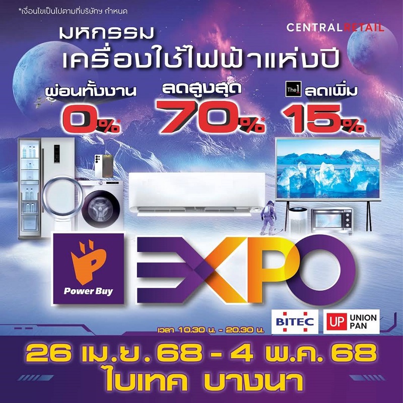 ยูเนี่ยนแพนฯ จับมือ ร่วมกับ เพาเวอร์บาย ในเครือเซ็นทรัล รีเทล จัดงาน Power Buy Expo ภายใต้แนวคิด “มางานเดียว ครบ จบ เรื่องเครื่องใช้ไฟฟ้า และสินค้าไอที” บนพื้นที่เดียวกับ The Biggest Fair 2025 ที่พร้อมยกทัพเครื่องใช้ไฟฟ้าจากแบรนด์ชั้นนำ มาลดกระหน่ำสูงสุดกว่า 70% และโปรชั่น รวมถึงสิทธิพิเศษอรีกมากมาย ตลอดทั้ง 9 วันของการจัดงาน ระหว่างวันที่ 26 เมษายน ถึง 4 พฤษภาคม 2568 ฯ ศูนย์การจัดนิทรรศการ และการประชุม ไบเทค (ไบเทค บางนา) EH 102-104
