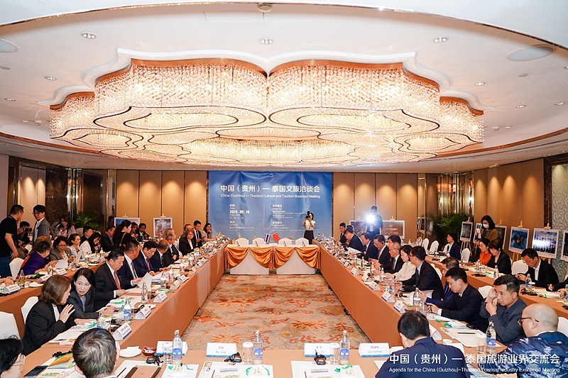 ส่วนช่วงเวลาบ่ายของวันเดียวกันนั้น ก็ได้มีการจัดประชุมด้านการวัฒนธรรมและการท่องเที่ยวจีน (กุ้ยโจว)-ไทย โดยมีวัตถุประสงค์เพื่อต้องการนำเสนอให้เห็นทรัพยากรทางวัฒนธรรมและการท่องเที่ยวอันอุดมสมบูรณ์ของมณฑลกุ้ยโจว เพื่อให้เกิดการแลกเปลี่ยนความร่วมมือระหว่างจีนและไทย ซึ่งภายในงานประชุมครั้งนี้ มีทั้งคณะผู้แทนระดับสูงจากมณฑลกุ้ยโจว, สมาคมไทยแต้จิ๋วแห่งประเทศไทย และคณะผู้แทนระดับสูงจากประเทศไทยด้านการท่องเที่ยว, สายการบิน, สมาคมหอการค้าไทย จีน, สมาคมการท่องเที่ยวภูมิภาคเอเชียแปซิฟิก, สมาคมไทยธุรกิจการท่องเที่ยว (ATTA), สมาคมไทยบริการท่องเที่ยว (TTAA) และสื่อมวลชนกว่า 20 สถานี เข้าร่วมการประชุมครั้งนี้