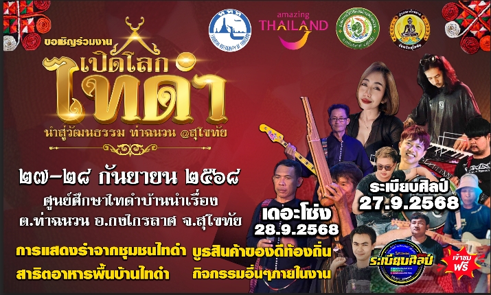 สุโขทัยชวนสัมผัสมนต์เสน่ห์ “ไทดำ” ในงานใหญ่ “เปิดโลกไทดำ นำสู่วัฒนธรรม ท่าฉนวน @สุโขทัย” 27 – 28 ก.ย. นี้! สัมผัสเสน่ห์วัฒนธรรมอ่านเพิ่มเติม “สุโขทัยชวนสัมผัสมนต์เสน่ห์ “ไทดำ” ในงานใหญ่ “เปิดโลกไทดำ นำสู่วัฒนธรรม ท่าฉนวน @สุโขทัย” 27 – 28 ก.ย. นี้!”