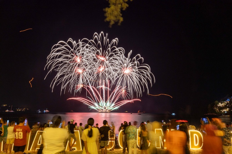 อีกไฮไลท์สำคัญจังหวัดภูเก็ต จัดโดย กลุ่มบริษัทพราว ร่วมกับ ผลิตภัณฑ์น้ำแร่ธรรมชาติตราช้าง, โรงแรมอินเตอร์คอนติเนนตัล ภูเก็ต รีสอร์ท, อินเตอร์คอนติเนนตัล ภูเก็ต รีสอร์ท เรสซิเดนเซส, พราว เรียล เอสเตท และสวนน้ำอันดามันดา ภูเก็ต ชวนชาวภูเก็ตและนักท่องเที่ยวร่วมเฉลิมฉลองคืนส่งท้ายปี ณ หาดกมลา กับโชว์พลุดอกไม้ไฟสุดตระการตา จำนวน 2,000 นัด ต่อเนื่องยาวนาน 10 นาที ที่จะสาดแสงสีบนฟากฟ้าเหนือน่านน้ำหาดกมลา ในช่วงเวลาเที่ยงคืนตรง สร้างบรรยากาศการเคานต์ดาวน์ที่งดงามและน่าประทับใจจากทุกมุมของชายหาด