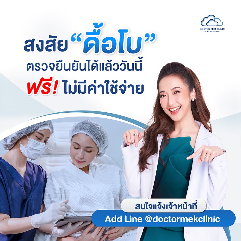 Doctor Mek Clinic ปล่อยแคมเปญตรวจ “ดื้อโบ” ฟรี! บริการตรวจยืนยันอาการดื้อโบ เพื่มประสิทธิภาพการปรับรูปหน้า