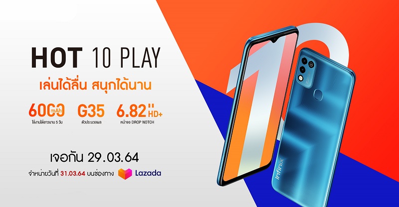 Infinix เตรียมเปิดตัวสมาร์ตโฟนรุ่นใหม่ HOT 10 PLAY มือถือแบตอึด! 6,000 mAh ในราคาไม่เกิน 4,000 บาทวางขายวันที่ 31 มีนาคมนี้ พร้อมกันทั่วประเทศ