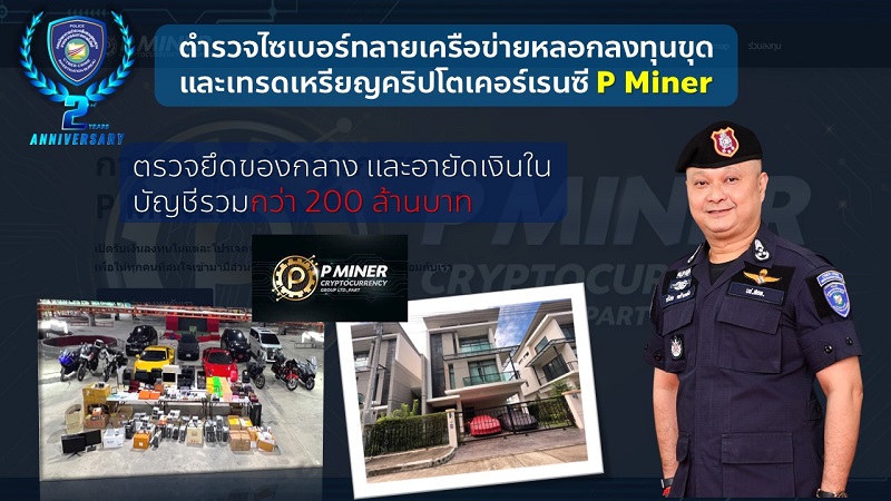 ตำรวจไซเบอร์ทลายเครือข่ายคดีหลอกลงทุนขุด และเทรดเหรียญคริปโตเคอร์เรนซี P Miner ตรวจยึดของกลาง และอายัดเงินในบัญชีรวมกว่า 200 ล้านบาท