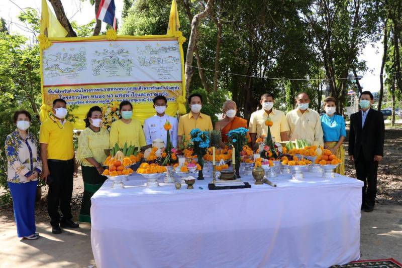 รองผู้ว่าราชการจังหวัดปทุมธานี เป็นประธานในพิธีบวงสรวงโครงการโคก หนอง นา แห่งน้ำใจและความหวัง วัดเกาะเกรียง