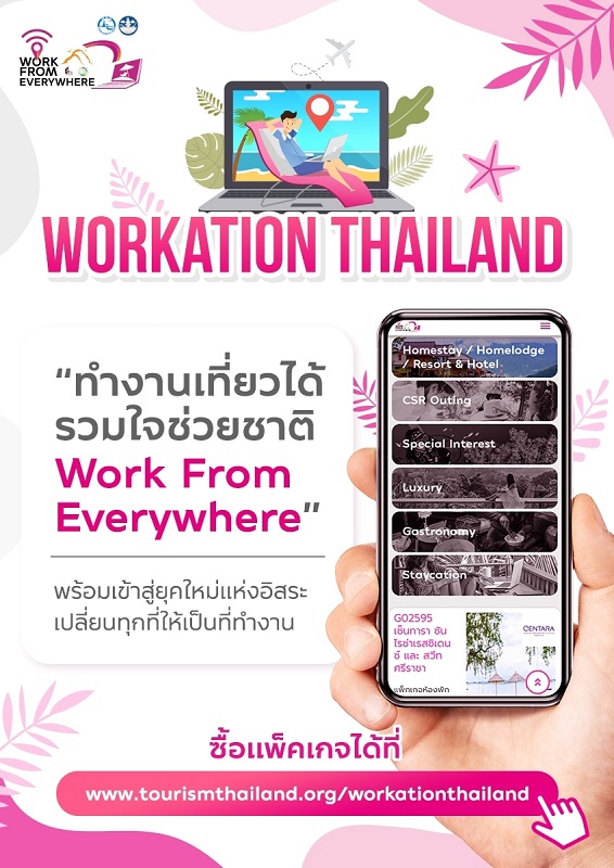 ททท. กระตุ้นตลาดท่องเที่ยว พร้อมยกระดับธุรกิจที่พัก กับโครงการ Workation Thailand “ทำงานเที่ยวได้ รวมใจช่วยชาติ : Work from Everywhere”