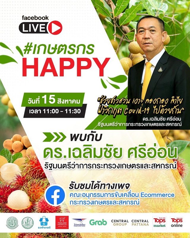 โควิดพ่นพิษส่งออกสะดุด “เฉลิมชัย”ปลุกตลาดภายในคิกออฟโครงการ “เกษตรกร Happy”เฟส2เร่งอัพราคาลำไย เงาะ ลองกอง พร้อมส่งทีม”เกษตรฯ.-พาณิชย์” ขึ้นเหนือทันที