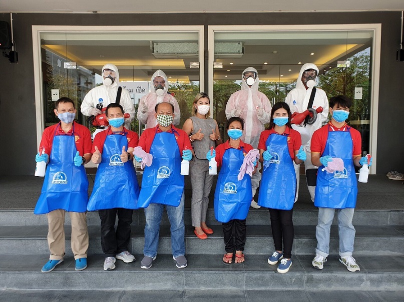 ภาคเอกชนเดินหน้าพ่นฆ่าเชื้อโควิด-19 สร้างความมั่นใจให้เจ้าหน้าที่ศูนย์บัญชาการตำรวจท่องเที่ยวสุวรรณภูมิ