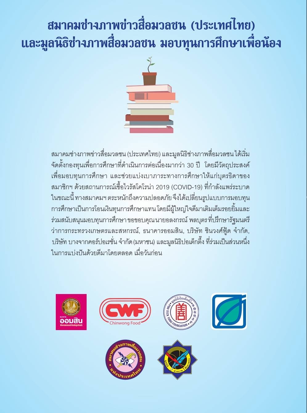 สมาคมช่างภาพข่าวสื่อมวลชน (ประเทศไทย) และมูลนิธิช่างภาพสื่อมวลชน มอบทุนการศึกษาเพื่อน้อง