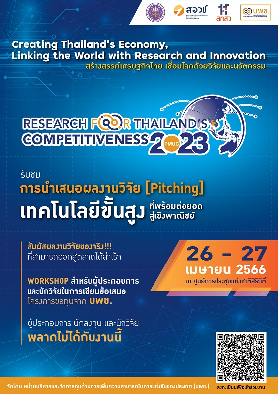 บพข.จัดงาน บพข. สร้างสรรค์เศรษฐกิจไทย เชื่อมโลกด้วยงานวิจัยและนวัตกรรม-PMUC RESERCH for Thailand’s Competitiveness 2023