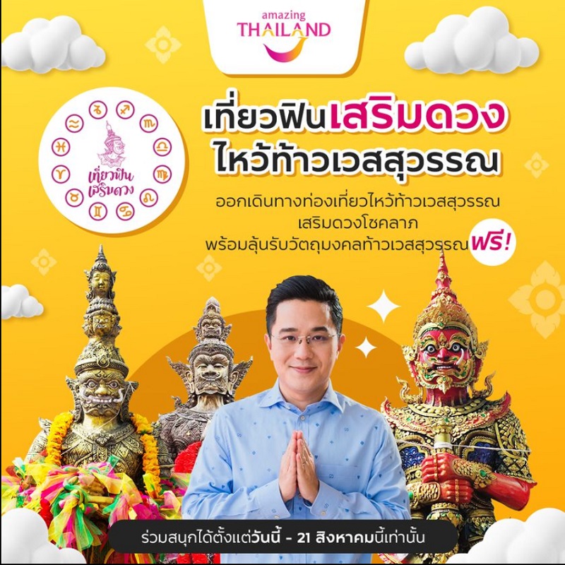 ททท.เอาใจสายมูเตลู จับมือหมอช้าง จัดกิจกรรม “เที่ยวฟินเสริมดวง” ไหว้ท้าวเวสสุวรรณ 5 เมืองรอง ลุ้นรางวัลรับวัตถุมงคล ฟรี!