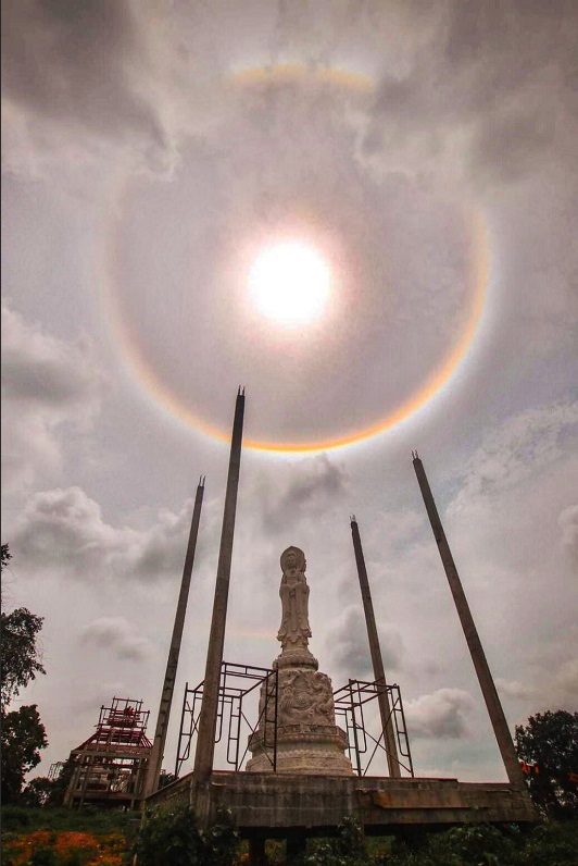 สุดมหัศจรรย์! “พระอาทิตย์ทรงกลด” ขณะอัญเชิญ ‘พระมหาโพธิสัตว์(กวนอิม)’ ขึ้น ณ แท่นประทับหยกขาว