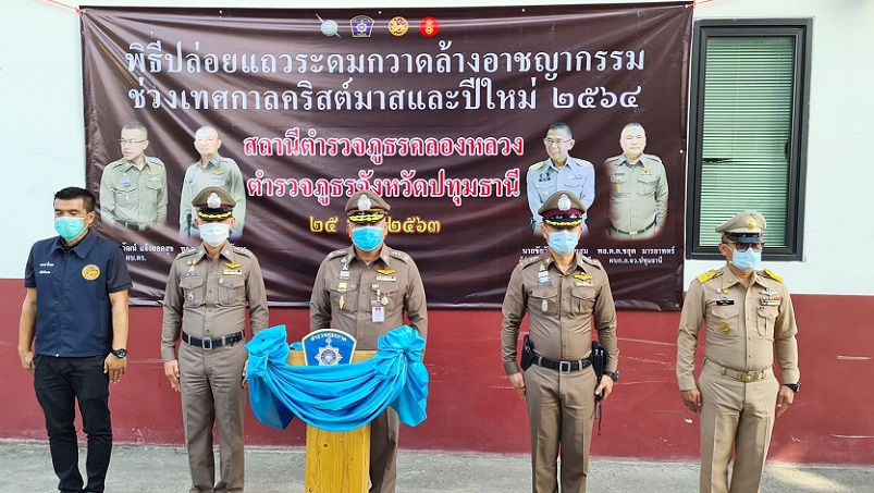 ผบก.ภ.จว.ปทุมธานี ประธานพิธีปล่อยแถวระดมกวาดล้างอาชญากรรม คริสต์มาส-ปีใหม่ 2564 พื้นที่ สภ.คลองหลวง
