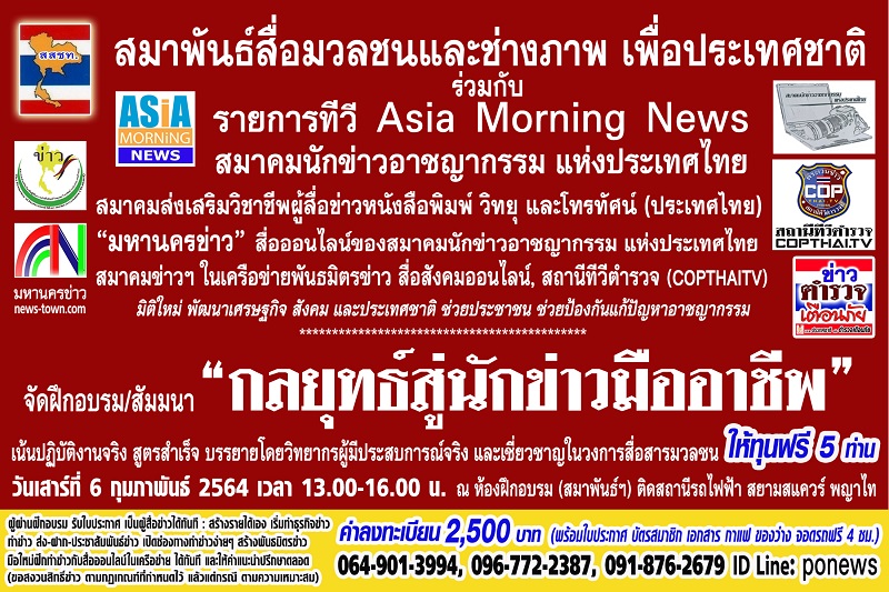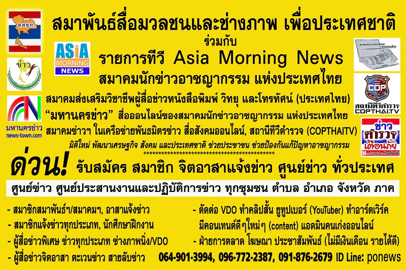 สมาพันธ์สื่อมวลชนและช่างภาพ เพื่อประเทศชาติ ร่วมกับ รายการทีวี Asia Morning รับสมัคร สมาชิก-อาสาแจ้งข่าว