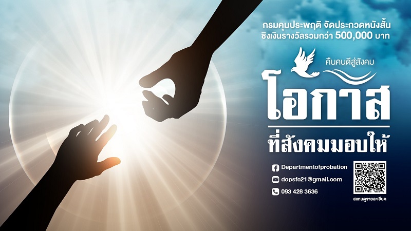 กรมคุมประพฤติ เชิญชวน นักเรียน นิสิต นักศึกษา และประชาชนทั่วไป ส่งผลงานประกวดหนังสั้น “โอกาสที่สังคมมอบให้” เพื่อร่วมสร้างสรรค์ ช่วยเหลือผู้กระทำผิด ได้กลับคืนสู่สังคม