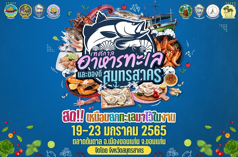 เชิญชวนพี่น้องชาวจังหวัดขอนแก่นและจังหวัดใกล้เคียง เที่ยวงาน “เทศกาลอาหารทะเลและของดีสมุทรสาคร”ระหว่างวันที่ 19-23 มกราคม 2565 ที่ ตลาดต้นตาล