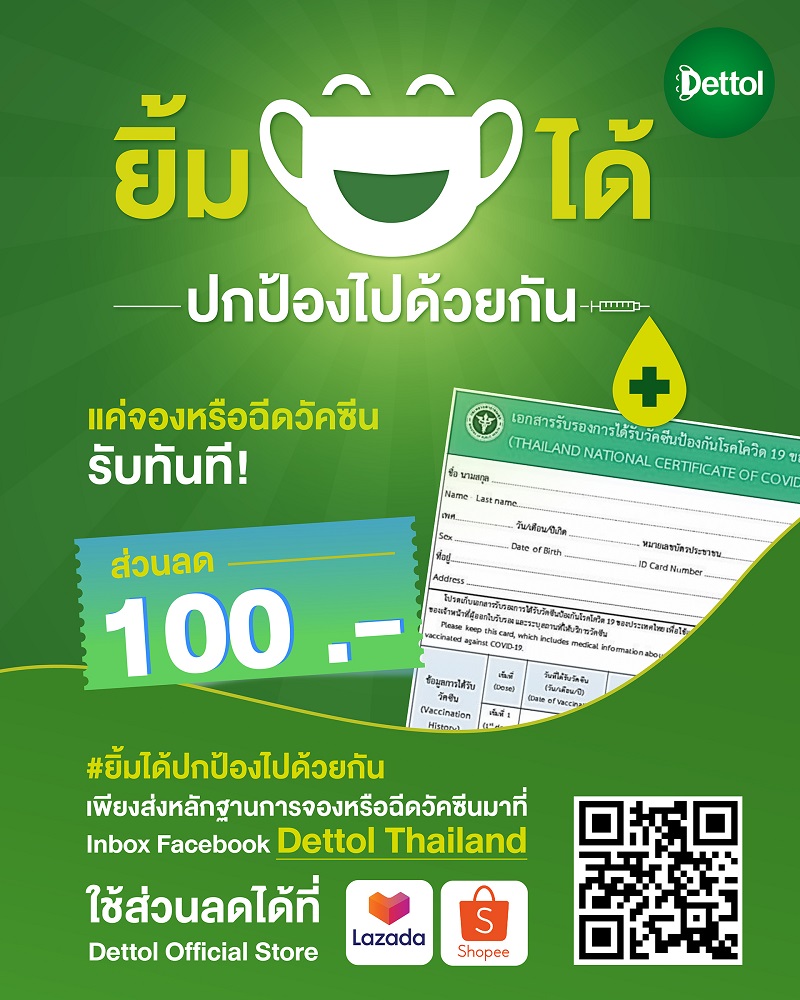 ‘เดทตอล’ ห่วงใยคนไทยสู้วิกฤตโควิด-19 มอบส่วนลด 100 บาทฟรี! แค่โชว์ใบจองหรือรับการฉีดวัคซีน